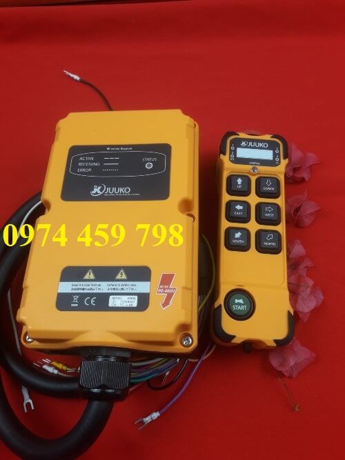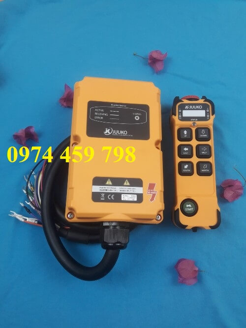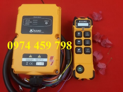 Điều khiển từ xa Đài Loan Juuko K600 có bộ thu sóng và tay bấm có 6 nút điều khiển và 1 nút dừng khẩn cấp, được Công ty Tuấn Đạt cung cấp cho rất nhiều công trình, nhà xưởng, là thiết bị chuyên dùng để lắp cho cầu trục, cổng trục.