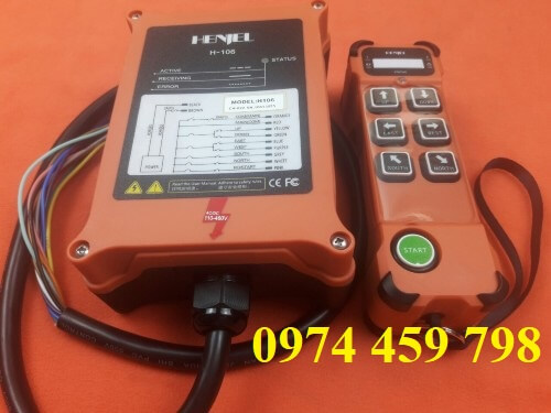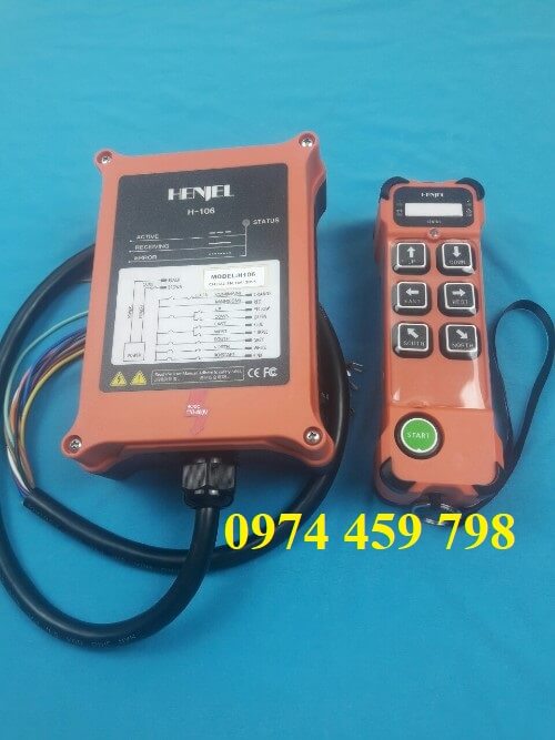 Điều khiển từ xa Henjel H106 có bộ thu sóng và tay bấm có 6 nút điều khiển và 2 tắt mở, được Công ty Tuấn Đạt cung cấp cho rất nhiều công trình, nhà xưởng, là thiết bị chuyên dùng để lắp cho cầu trục, cổng trục.