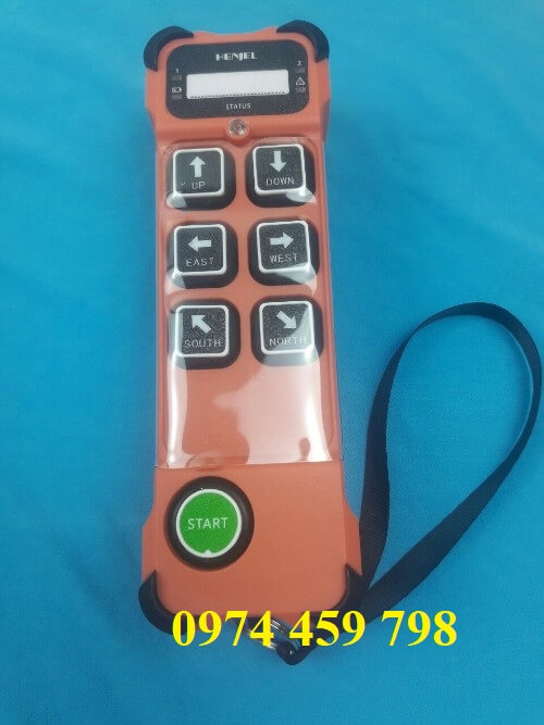 Điều khiển từ xa Henjel H106 cũng được mô tả ngắn gọn như sau: gồm 6 nút điều khiển, 1 cấp tốc độ và có 1 nút dừng khẩn cấp, với tính năng thuận tiện, dễ sử dụng nên được các nhà xưởng công nghiệp lựa chọn rất nhiều hiện nay.